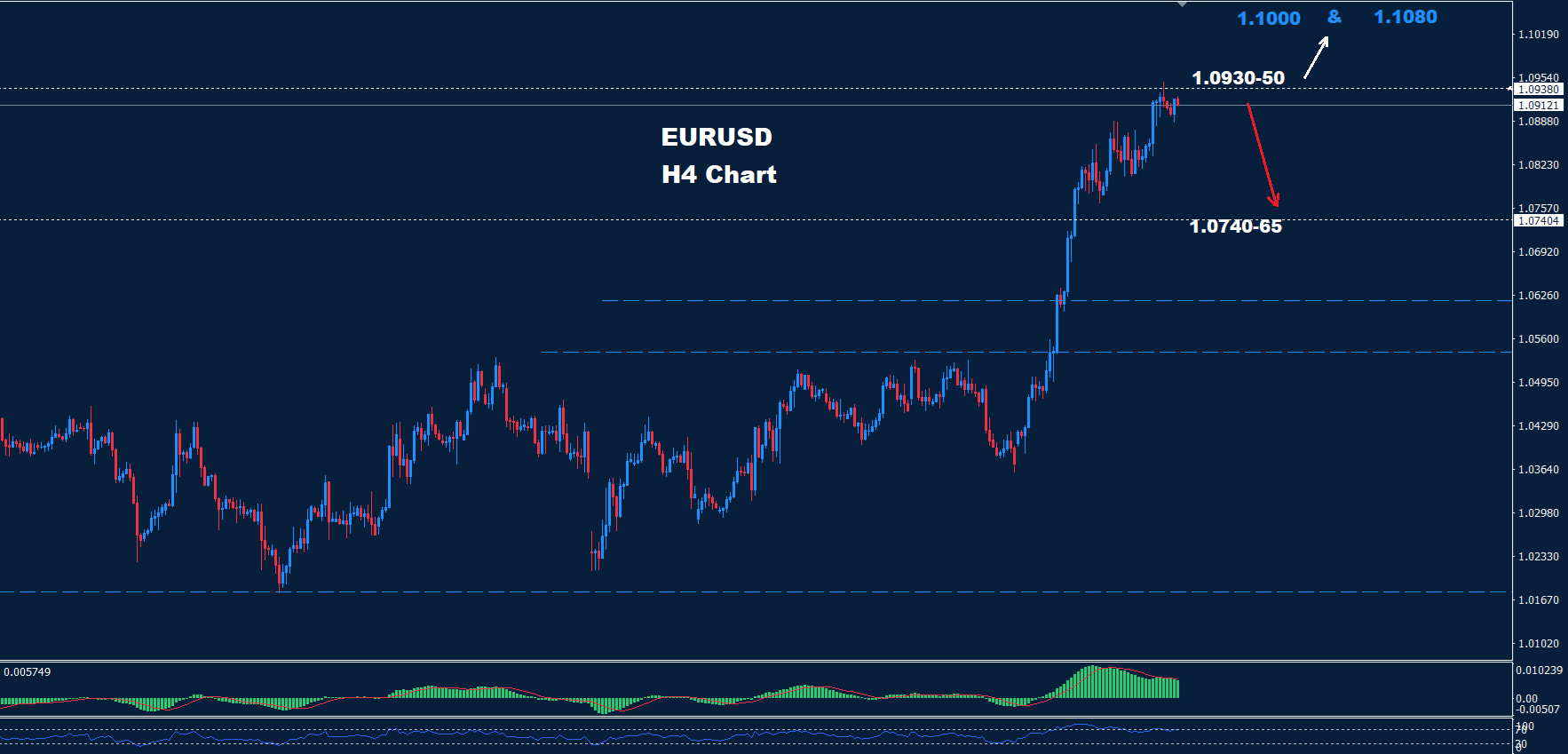 فوق 1.0950، هناك فرصة لمزيد من الارتفاع نحو 1.1000 أو 1.1080.