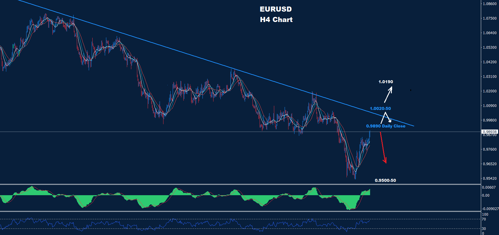 تمكن اليورو من اختبار المقاومة 0.9890 اليوم بينما لا يزال ينتظر الإغلاق اليومي.