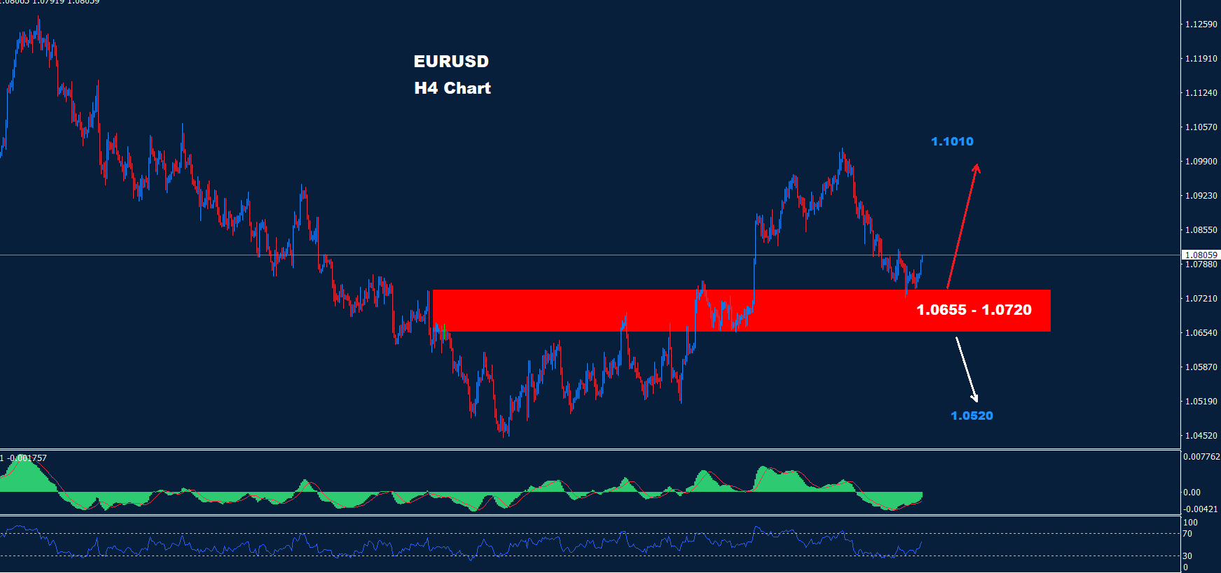 كما نرى على الرسم البياني، يواجه السوق منطقة دعم حول 1.0655-1.0720 مما قد يعطي فرصة لموجة تقدم أخرى.