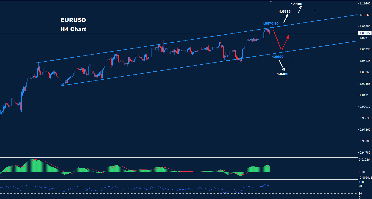فوق 1.0880 نتوقع المزيد من التقدم على اليورو حيث توجد المقاومة عند 1.0935 و 1.1100.