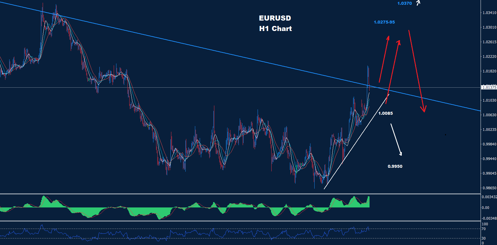 تمكن اليورو من إضافة المزيد من التقدم نحو خط المقاومة 1.0185 كما أشرنا الأسبوع الماضي، حيث قد يدفع هذا الاتجاه لاستمرار موجة الهبوط.