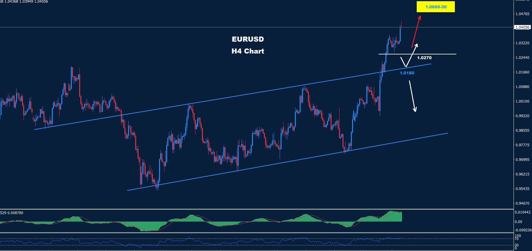 تمكن اليورو من التقدم أكثر اليوم على أمل أن يخفض الاحتياطي الفيدرالي وتيرة رفع سعر الفائدة بينما تمكن السوق من اختراق المقاومة 1.0370.