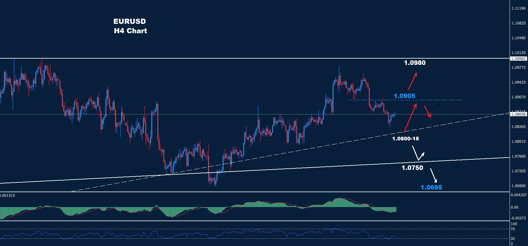 تحت مستويات 1.0800 فإن مزيداً من التراجع والهبوط قد يضرب السوق مع دعم حول 1.0750 و1.0695.