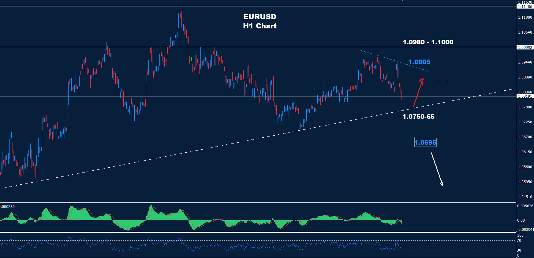كما نرى على الرسم البياني، يواجه السوق ترند دعم حول 65-1.0750 والذي إذا تمكن من اختبار ودعم السوق، فمن المتوقع حدوث تصحيح ارتدادي نحو 1.0905.