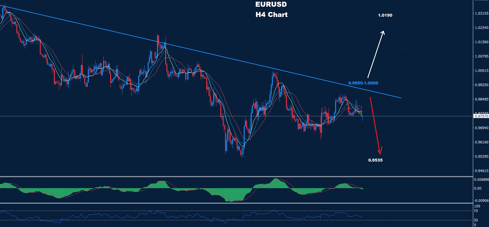 تمكن اليورو من الحفاظ على التداولات حتى الآن تحت ترند الموجه الهابطة قصير المدى حيث توجد المقاومة الآن حول منطقة 0.9900.