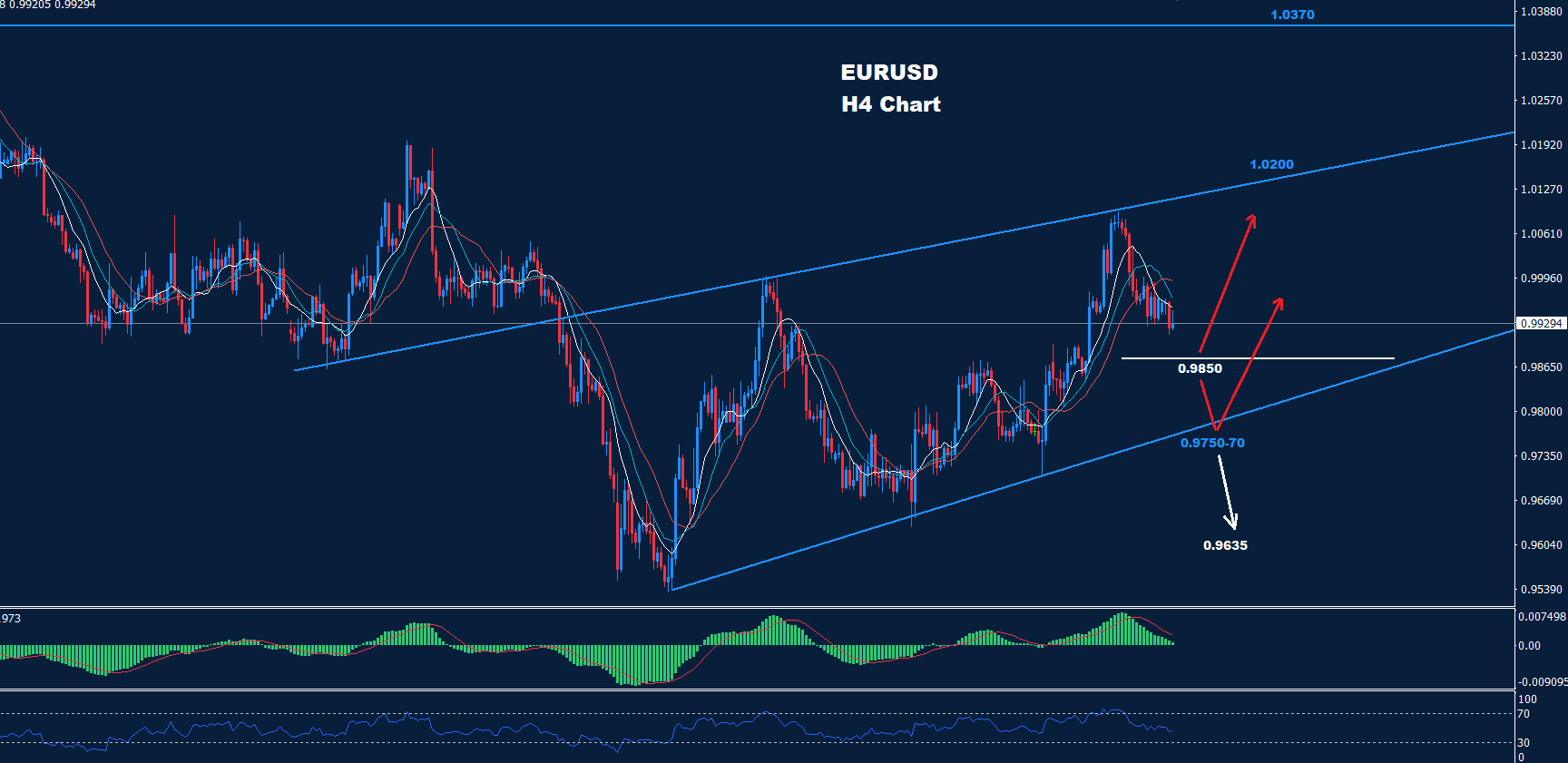 تمكن اليورو من إضافة المزيد من الانخفاض الأسبوع الماضي حيث تمكن السوق من الاقتراب من الدعم الأول 0.9900.