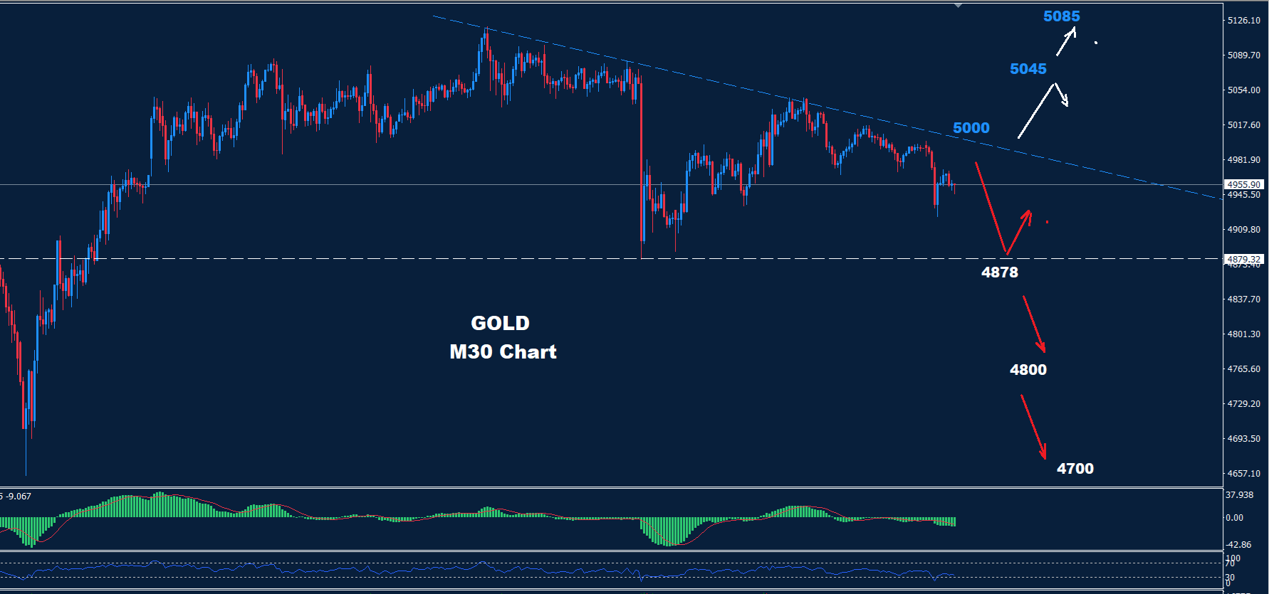 سيواجه السوق دعمًا عند 4878، مما قد يتيح فرصة لحركة تصحيح ارتدادية.