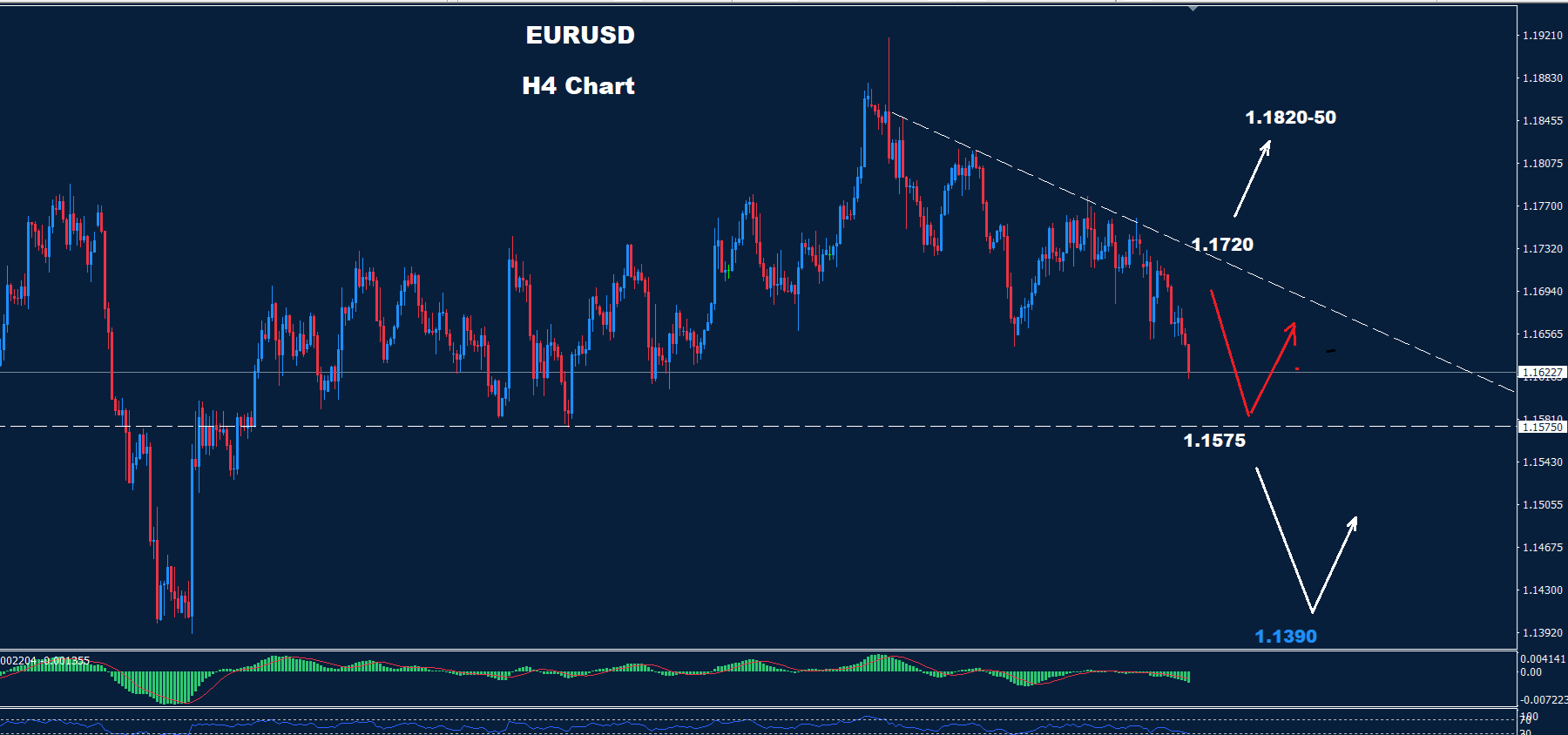 أما الانخفاض دون مستوى 1.1575، فمن المتوقع أن يشهد السوق مزيدًا من الانخفاض نحو منطقة 50-1.1420.