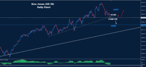كما أشرنا الأسبوع الماضي وكما نرى على الرسم البياني السابق تمكن مؤشر الداو من إضافة المزيد من حركة الهبوط تحت مستويات 42000 بينما تمكن السوق اليوم من اختبار منطقة الدعم 700-41600 كما أشرنا الأسبوع الماضي وطالما أن السوق يستمر في الاحتفاظ بالتداولات فوق مستوى الدعم 700-41600، فمن المتوقع حدوث حركة ارتداد بينما من المتوقع حدوث […]