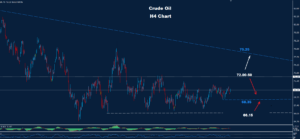 كما أشرنا الأسبوع الماضي وكما نرى على الرسم البياني السابق النفط الخام لا يزال متمسكًا بمنطقة التداول السابقة بين الدعم 66.15 والمقاومة 50-72.00 بينما يحافظ السوق على منطقة التداول هذه، تبدأ المؤشرات في اظهار فرص لتقدم كبير نحو منطقة 75.25 يبدأ الدعم اليومي من 68.35 و66.15 بينما تبدأ المقاومة من 70.95 و 50-72.00 الدعم المقاومة […]