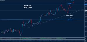 توضح البيانات تردد في حركة النفط الخام، حيث تمكن تمكن من الوصول إلى الهدف 40-77.20 وما فوق قبل أن يتعرض السوق لتصحيح هبوطي سريع. كما يتضح من الرسم البياني، يواجه السوق منطقة دعم حول 73.25-74.00، والتي قد تؤدي إلى جولة أخرى من الصعود نحو منطقة 40-77.20 و78.80. يمكن أن يتعرض السوق لمزيد من الهبوط إذا […]