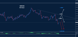 تمكن الجنيه الإسترليني مقابل الدولار الأميركي من الاختراق تحت مستوى الدعم 1.2500 مما قد يجدد المزيد من مسار الهبوط للزوج كما نرى على الرسم البياني وطالما استمر السوق في الحفاظ على تداولاته تحت 1.2580 فإن موجة الاتجاه الهبوطي لا تزال تتوقع منطقة 90-1.2270 فوق 1.2580، المزيد من الارتداد نحو 1.2680 قد يضرب السوق تقع المقاومة […]
