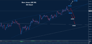 في حركة سريعة قبل يومين، تمكن مؤشر داو جونز من تجاوز مستوى المقاومة 46450، بينما تمكن من التراجع سريعًا داخل نموذج الوتد الصاعد كما نرى على الرسم البياني. لا تزال الأدوار نفسها سارية، حيث قد يؤدي هذا النموذج التداولي إلى تراجع حاد نحو مستوى الدعم 44925. فوق مستوى 46720، قد يدفع هذا إلى مزيد من […]
